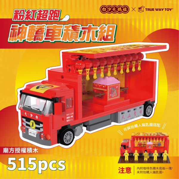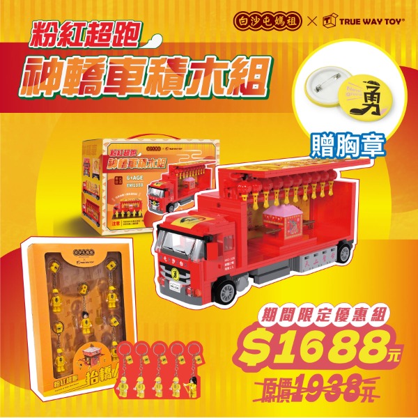神轎車優惠套組-粉紅超跑神轎車積木+抬轎人五入組 贈 2026勇字胸章